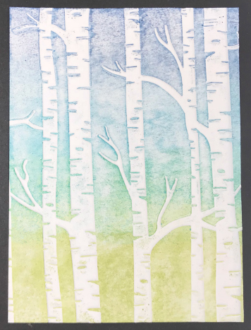 This example uses 3 complementary colours and was blended using a brayer. You could also use a sponge or blending tool for a similar result.