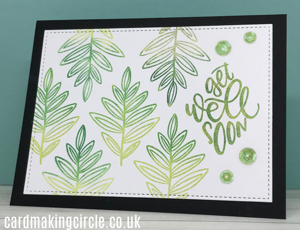 For this card I first stamped the sentiment in the centre of the card to provide the diamond outline for the stamped images.