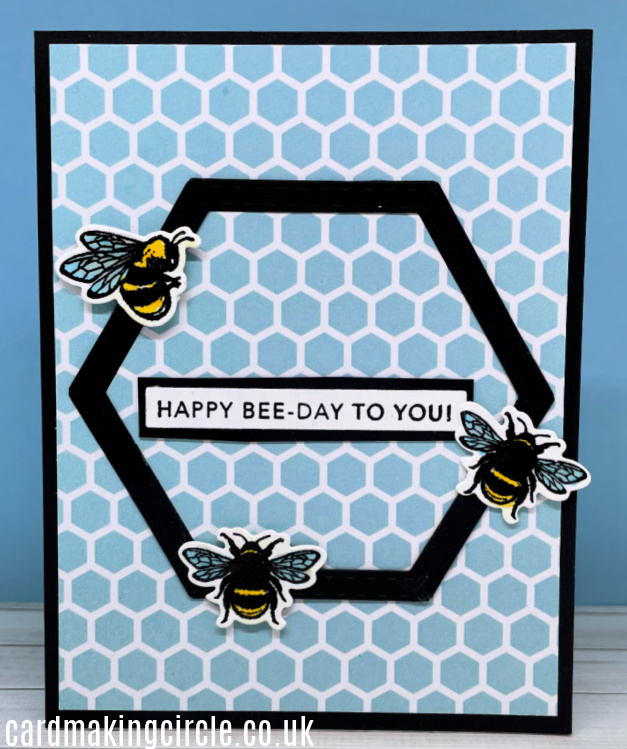 I'm a great fan of background stamps and this Bee Hive stamp from Catherine Pooler makes for easy card making.