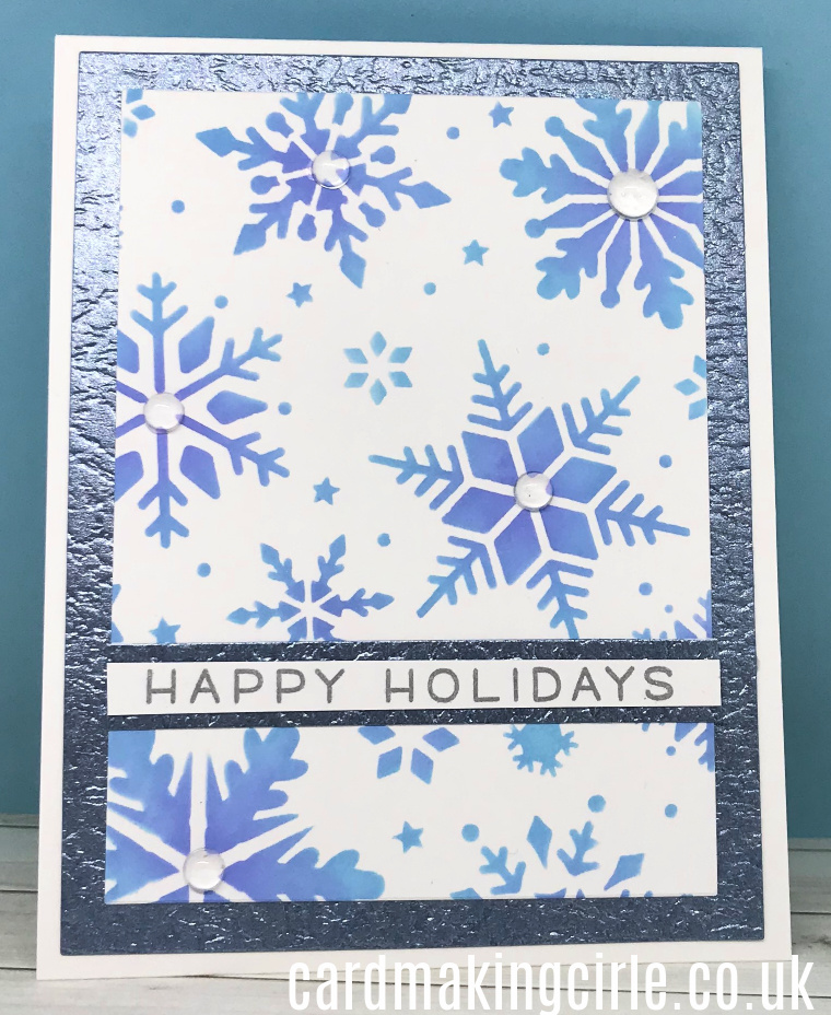 These quick Christmas cards were created with the snowflake stencil from Tonic Studios.