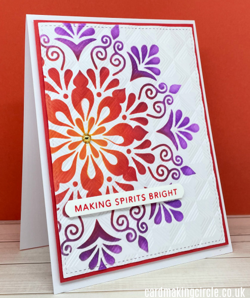 Ink blend through the stencil with tumbled glass and shaded lilac distress oxide ink. A beautiful combination of colours.